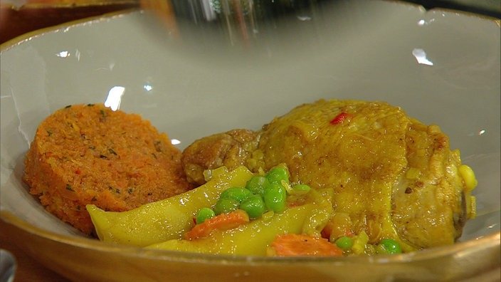 | | Julia Komp präsentiert ein aromatisches marokkanisches Hühnchen mit frischen Erbsen und einem feinen Möhren-Tatar. Einfach köstlich! | |