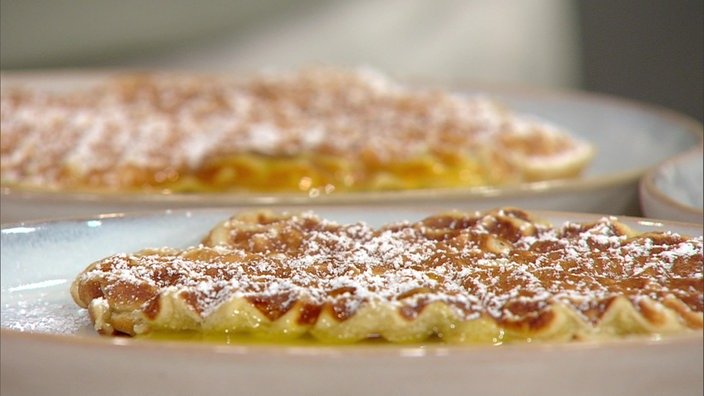 | | Die Buttermilchwaffeln mit fruchtiger Orangensoße von Konditormeister Marcel Seeger sind luftig, süß und einfach köstlich! | |