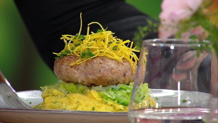 | | Alexander Wulf serviert mit Feta gefüllte Frikadellen auf frühlingshaftem Kartoffel-Schnittlauch-Püree und frischem Lauchgemüse. | |