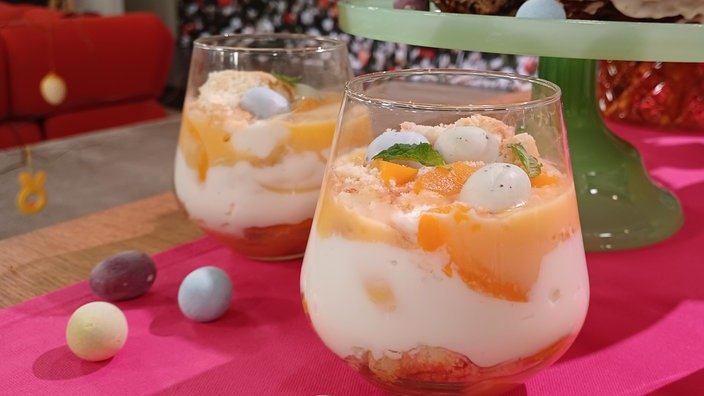 | | Konditormeisterin Theresa Knipschild zaubert ein farbenfrohes Tiramisu mit österlichen Aromen und selbstgebackenen Löffelbiskuits. | |